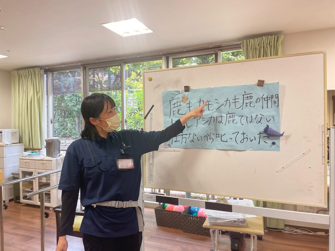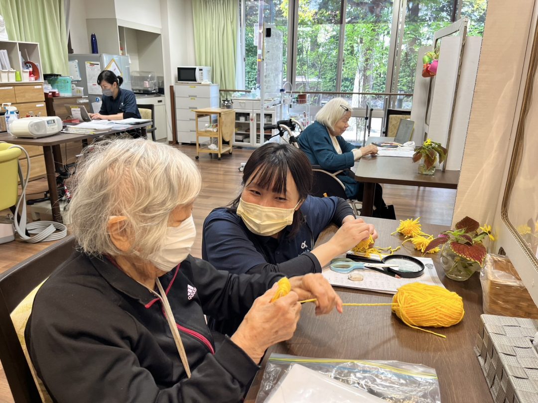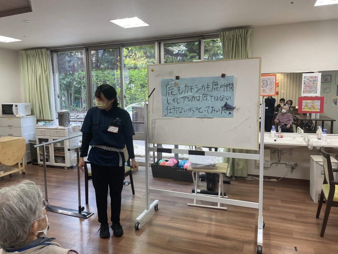 ほりおさんはデイサービスでの業務は初めてで、送迎や司会も初めて挑戦され日々頑張っています。2か月が経過して、「脳トレやレクリエーションは経験がなく緊張しながら日々頑張っています」と言われていました。