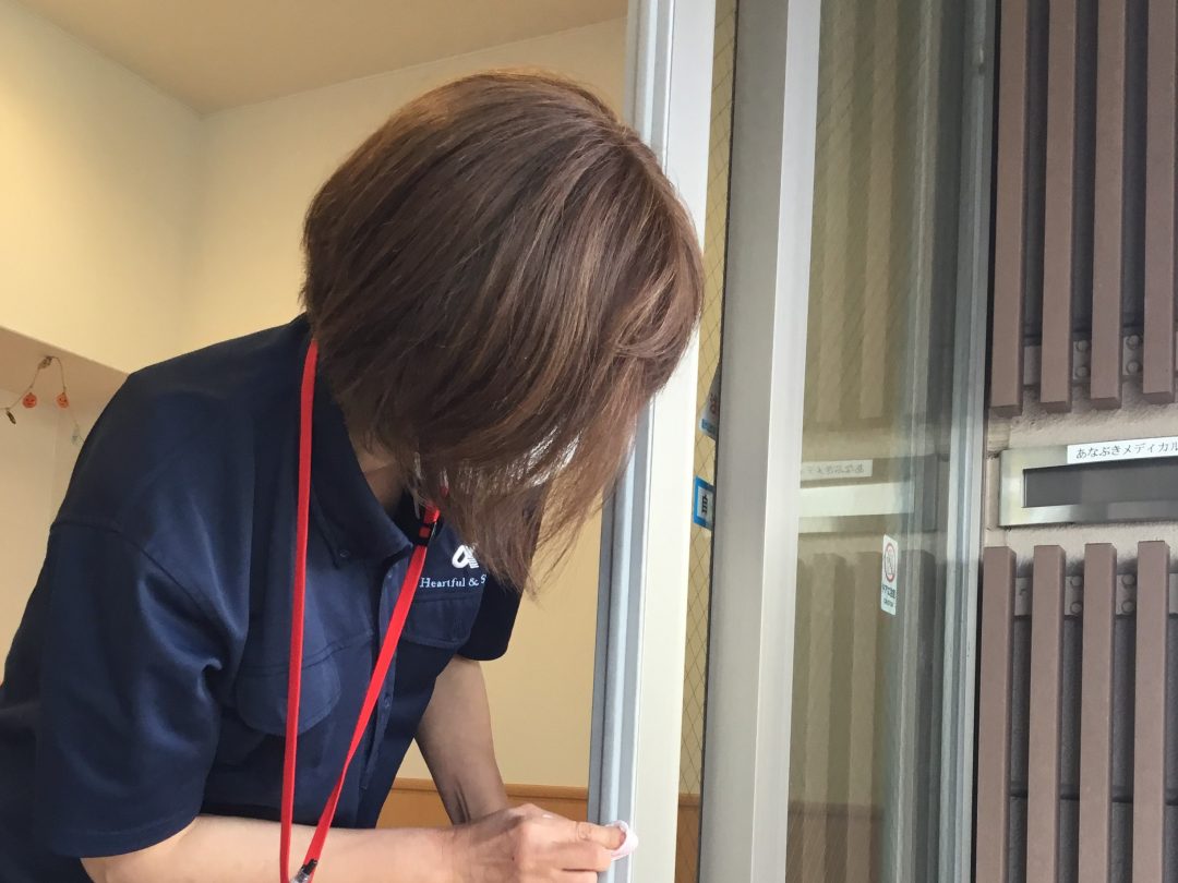 そして、生活支援スタッフのあずまさんは施設内の環境整備やご入居者の居室清掃を行ってくれています。