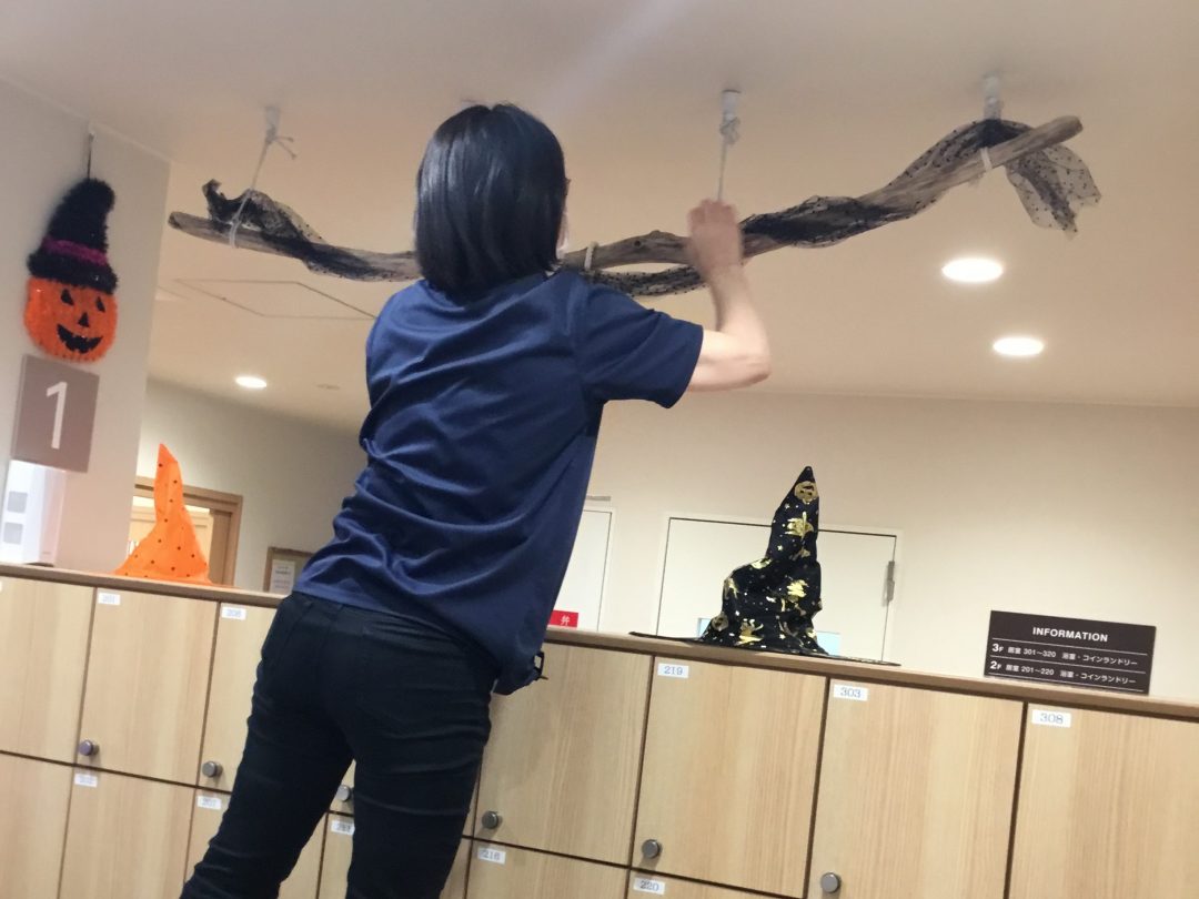 直接介護の仕事ではないですが事務員のながおさんは事務業務だけではなく施設内の四季折々の飾りつけを考案から飾りつけ作業までを手掛けています。