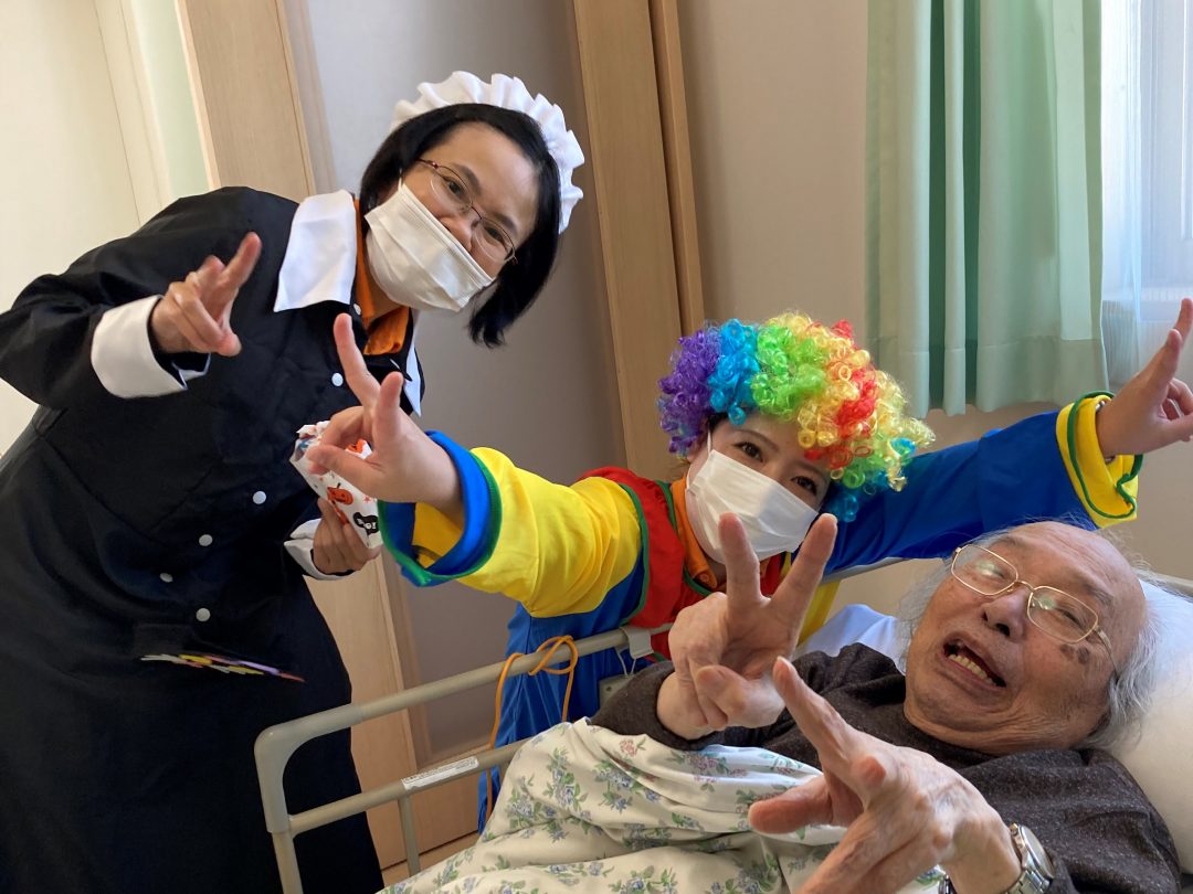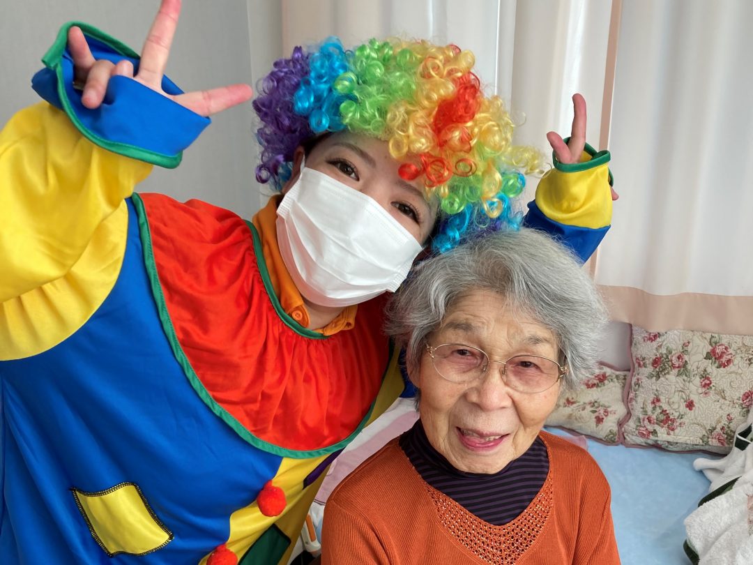 レクリエーションイベントも毎月あり、10月にはハロウィン仮装をしてご入居者の居室をお一部屋ずつ伺って、お菓子を配らせていただきました。その際、とびきりの笑顔を見られました!