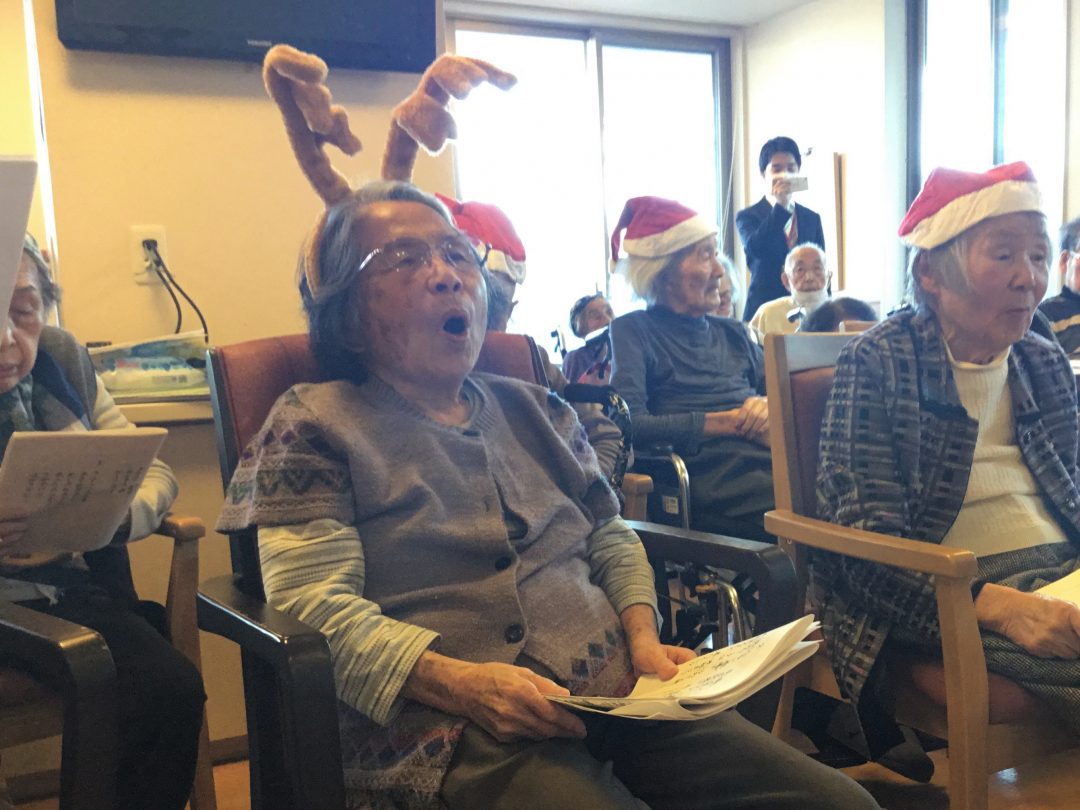 今年のクリスマス会の目的は、「音楽を聴くことによってご入居者の皆様が笑顔になり、リラックスして楽しい時間を過ごし、季節を感じていただく」というものでした。