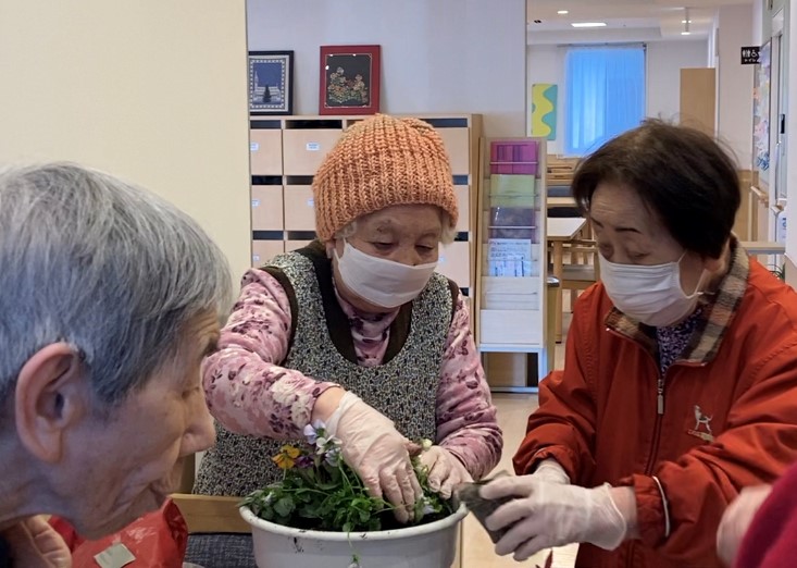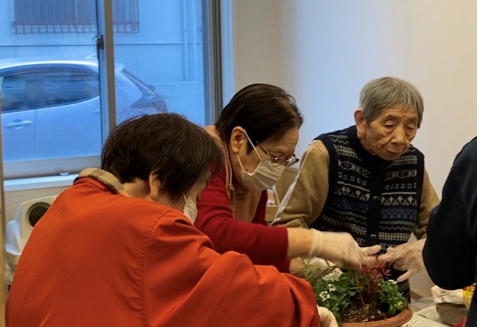 「鹿沼土はいいのよ~」と話される楽しい声を聞きながら、作業手順を説明し個々にできる作業を行ってもらいました。