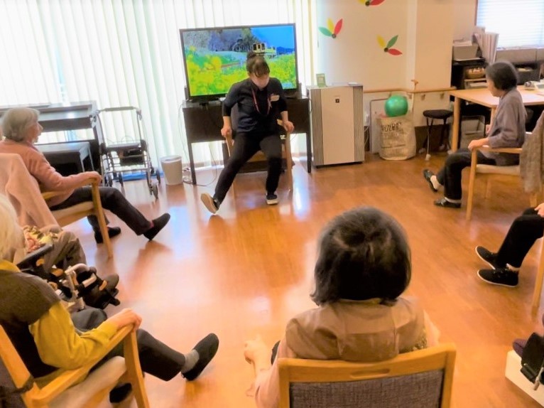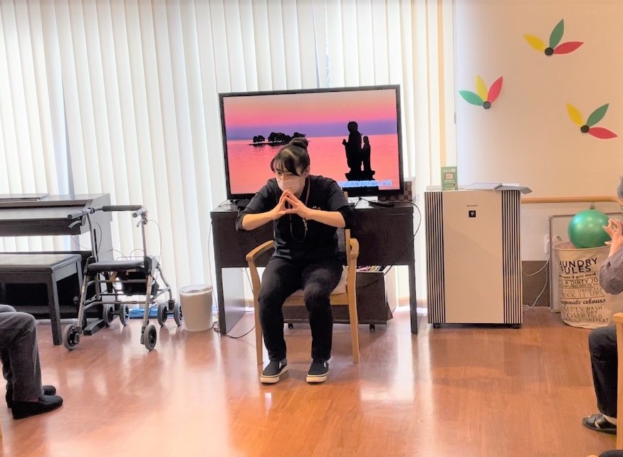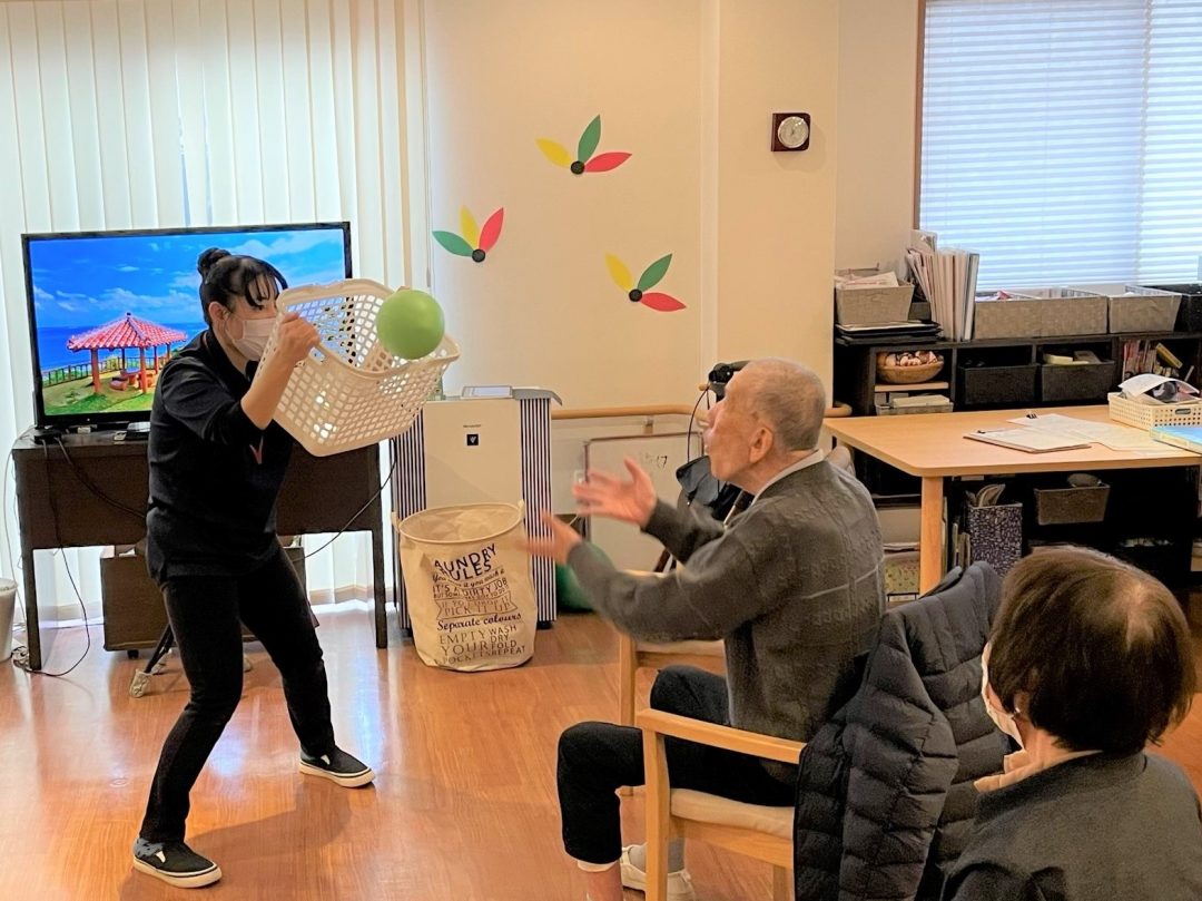 体操では身体機能や口腔機能が維持できるよう、ゲーム性を持たせた様々な運動で自然とカラダが動くよう工夫しており、ご利用者の皆様にも好評です。