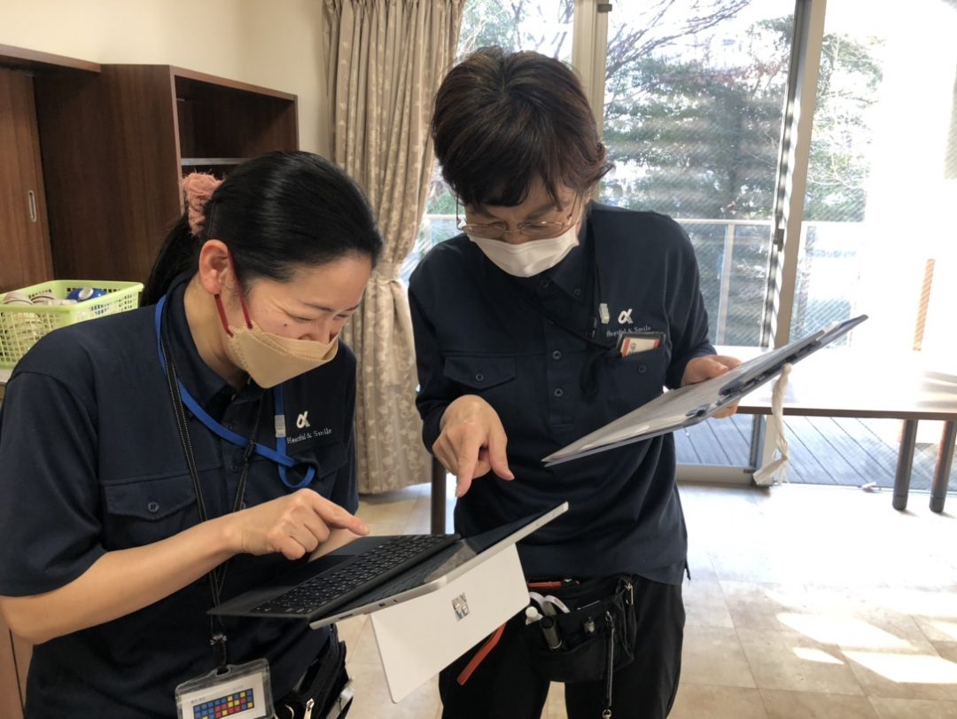 ご入居者からも「明るくて元気がもらえるね」「安心して任せられる」とお言葉をいただきました。他職種のスタッフとも連携をとり、毎日頑張っています。