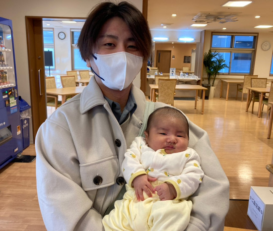 先日、育休中のスタッフが施設を訪問してくれました。