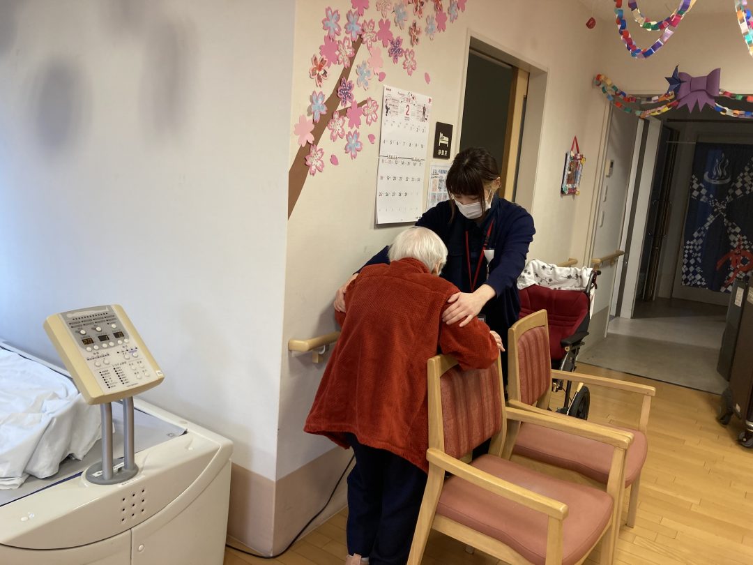 歩行訓練や立ち座り、屋外歩行、主には日常生活での訓練を行っています。