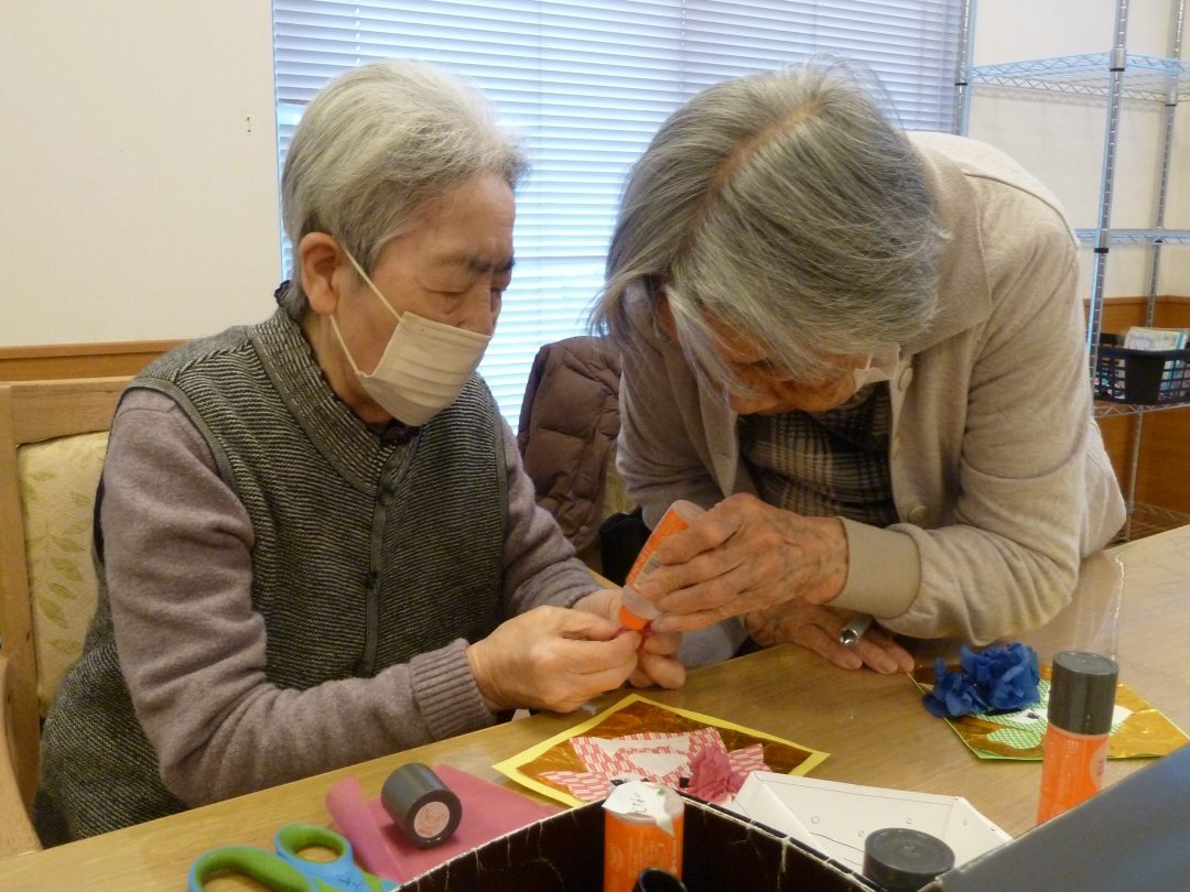 新年の『書き初め』や季節を思い出し感じていただく『手芸』を入れて、選り取り見取りの時間を過ごされています!頭と手を動かし、『体』と『脳』の体操を有効活用する素敵な取り組み!これからも、もっともっとそんな時間を増やし、活動していきたいと思います。