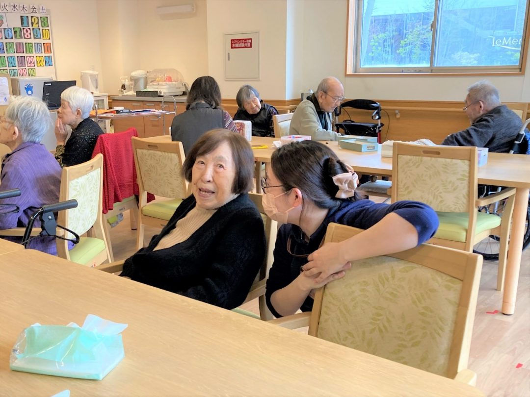 「これからもデイスタッフ一丸となって事業所を盛り上げていこうと思います。そして、アルファリビングのご入居者以外の地域にお住いの方々にも交流の場としてご利用いただきたいと思っています」と目標を話してくださり、モチベーションの高さがうかがえます。