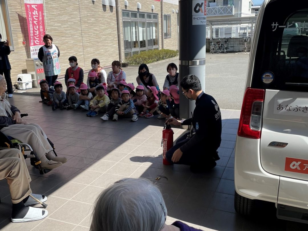 アルファリビング博多南の一角には、あいくる保育園さんがあります。同じ建物になりますので、園児も含めて訓練を実施しました。