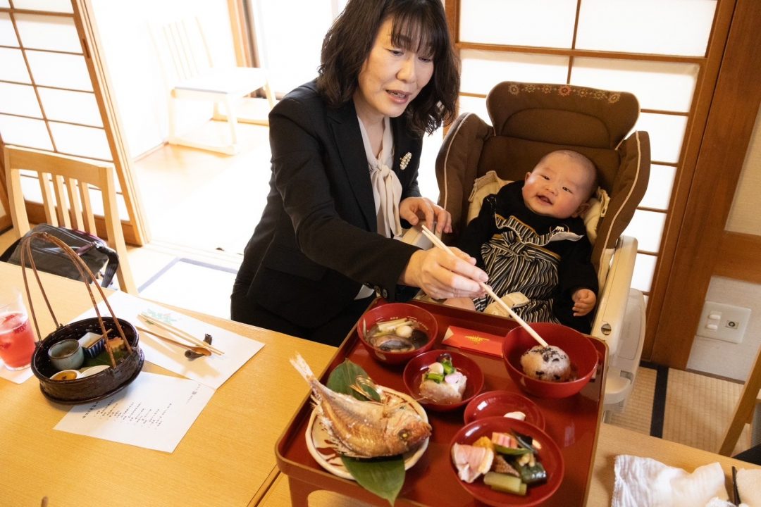 これは誕生100日のお祝いで、お食い初めの写真です。