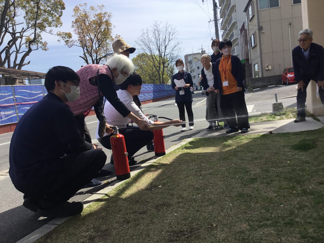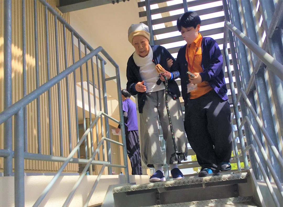 参加いただいたご入居者は階段から避難訓練を実施しただけではなく、消化器の使い方も一緒に訓練してもらいました。