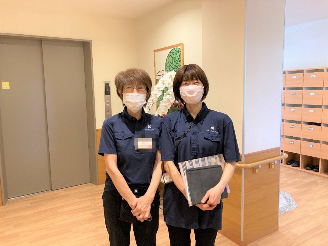 また、お客様や外部の業者様などご来訪くださった方々が、綺麗な施設ですねとよく褒めてくださいます。年月が経つとそれなりに汚れるのは仕方ないですが、はらださんとかすうさんは小さなことでもたくさん気づいてくださり、施設内に汚れやゴミがあれば、いち早く対応してくださいますので、アルファリビング岡山野田はいつも綺麗で、長く美観を維持できている理由の一つだと思います。いつも本当にありがとうございます。