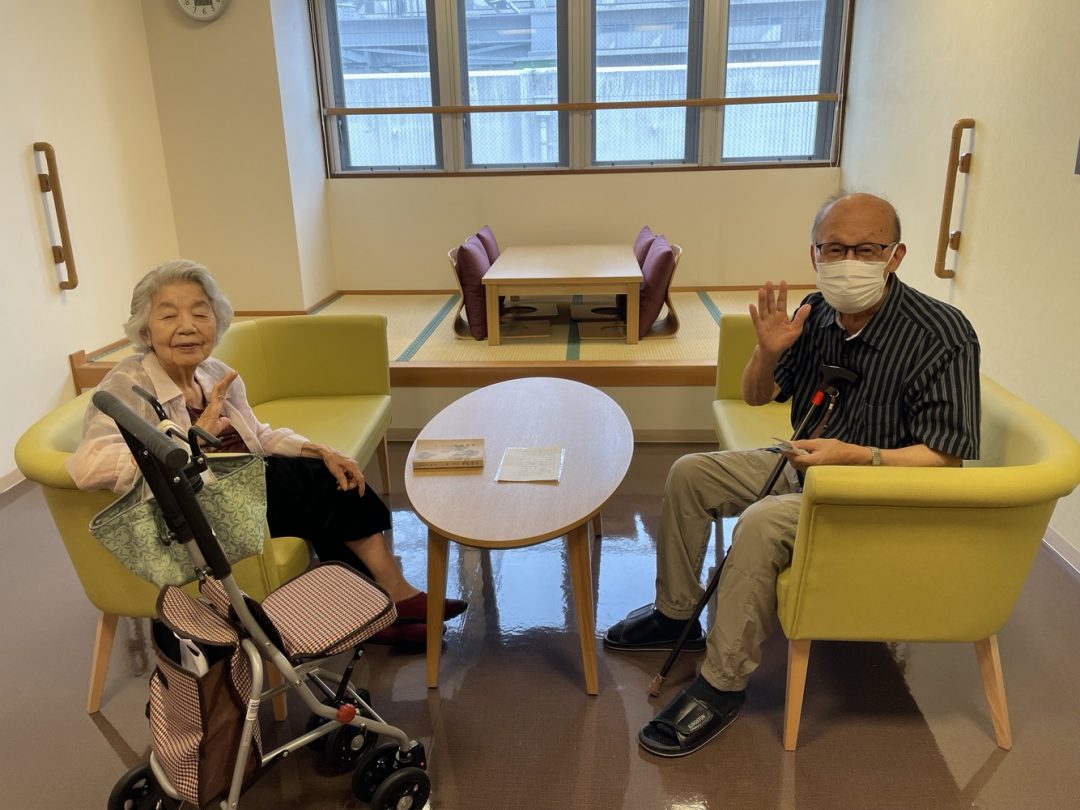 昼食が終わりゆっくり過ごされている頃、談話室から楽しくお話をされる声が聞こえてきました。NさんHさんでした。「楽しそうですね」と声を掛けると俳句のお話をされているとのことでした。