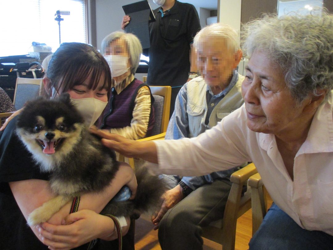 可愛いわんちゃんたちにご入居者は皆さま満足されたご様子で、笑顔の絶えないひと時となりました♪