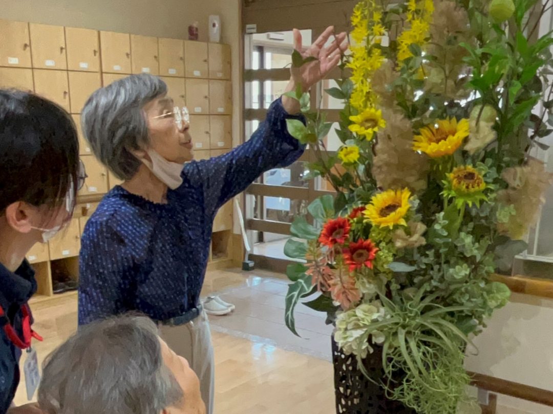 初めての試みで置き場所もどこにしようか試行錯誤しながら置き場所を変える作業をしていると、通りがかったご入居者やデイサービスのご利用者も興味深々!