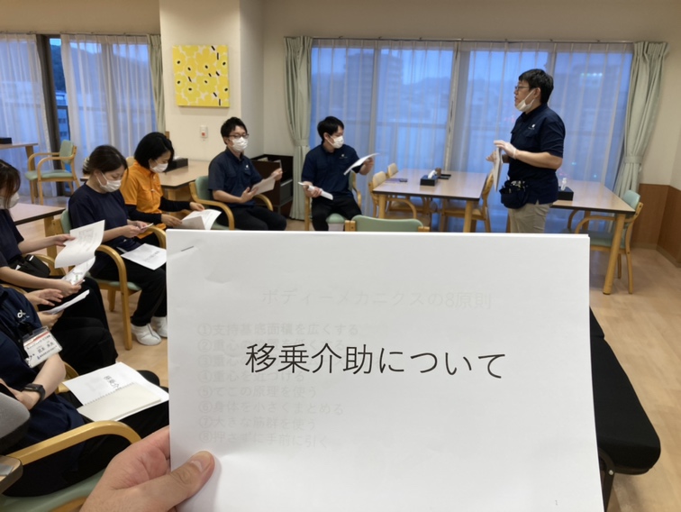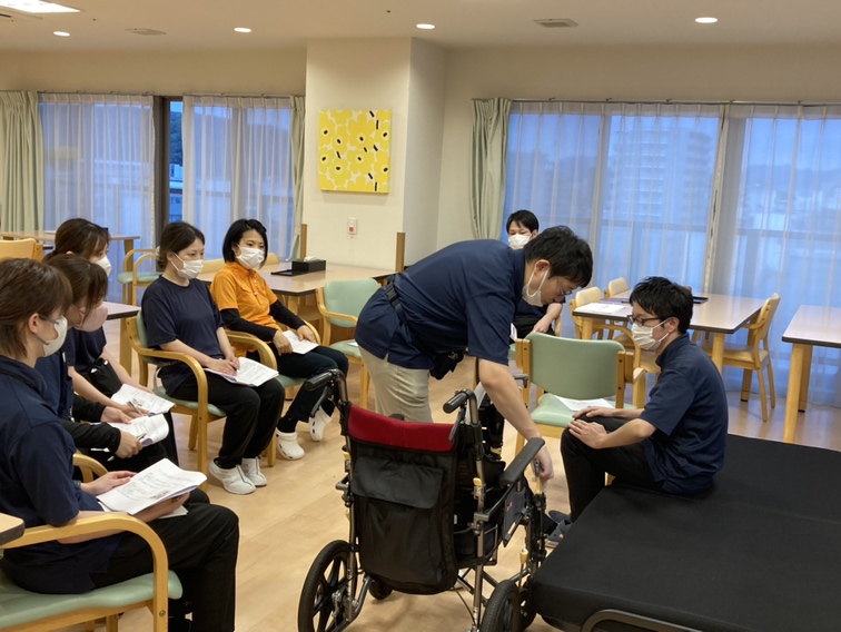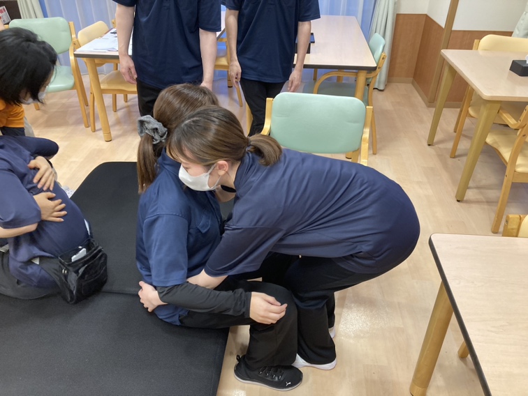 せっかくなので、こばやしさんの技術を他のスタッフに伝授してもらいましょう!ということで、介護技術の勉強会を実施してもらうことにしました。