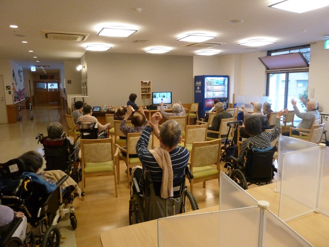 体操や機能訓練することにより、身体活動を増やし、寝たきりや身体機能低下を防ぐことができ、クイズや脳トレをすることにより、記憶力アップや認知症予防につながります。