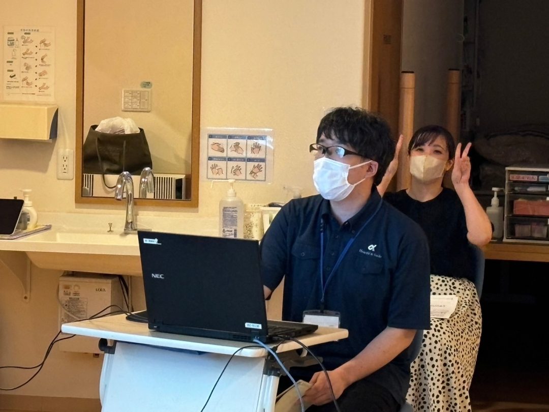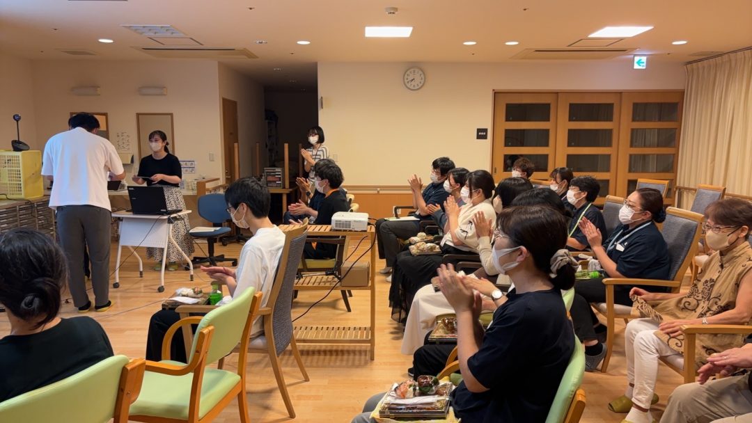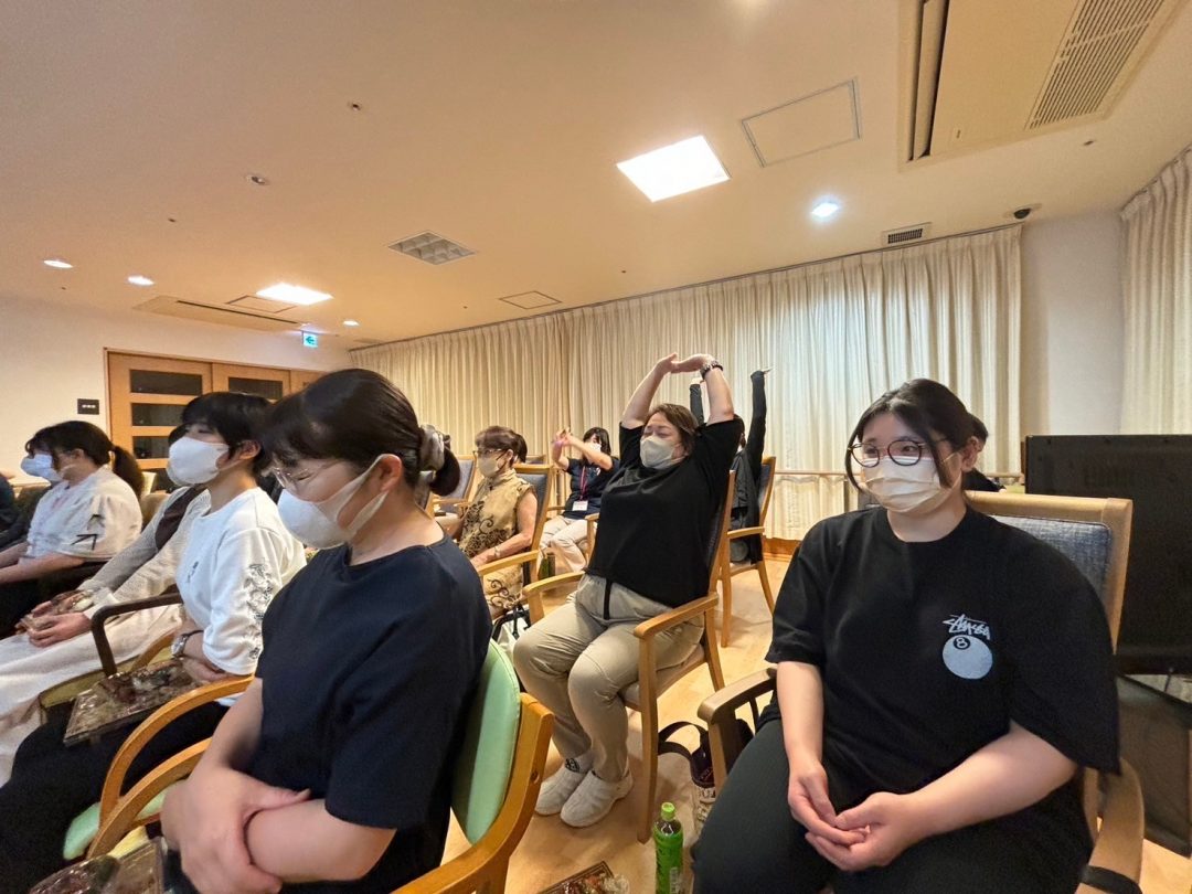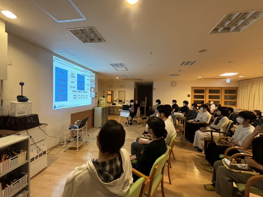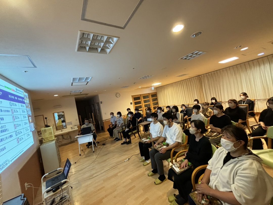 前半は難しい話も多く、緊張気味のスタッフでしたが第一部終了時にやました施設長から「背伸びをして深呼吸をしましょう」と一声ありリラックス。