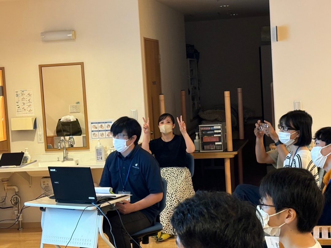 発表者にカメラを向けるたびにピースサインで写り込むやました施設長…(笑)