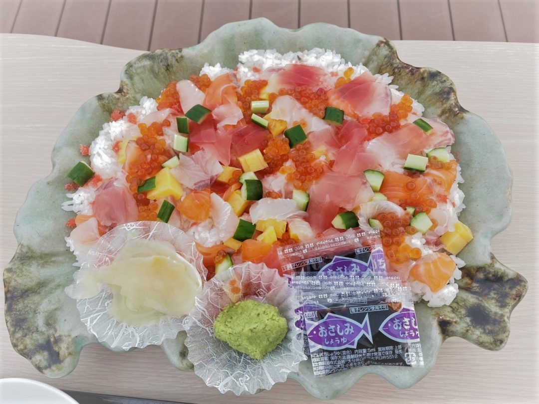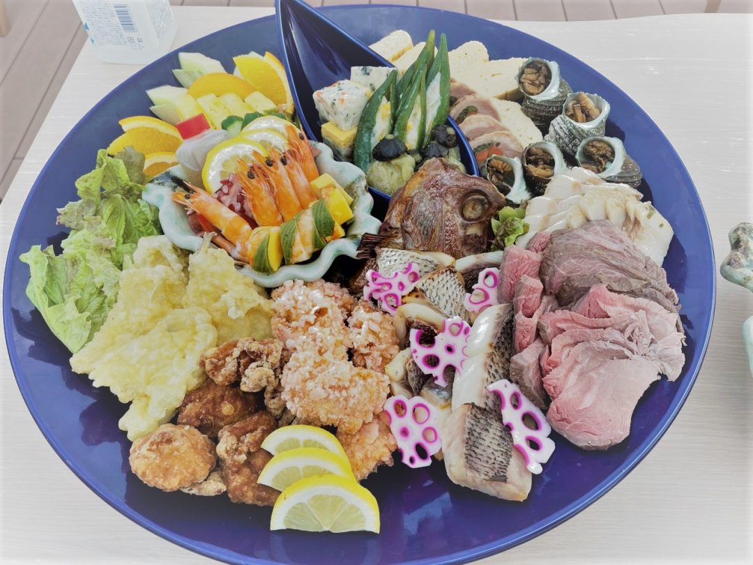 ご自身が欲しいお食事を選べることに重点を置きましたのでバイキング方式にしました。ちらし寿司は鮮やかで大人気でした。また、意外にもサザエ(貝)が人気なのにビックリでした。