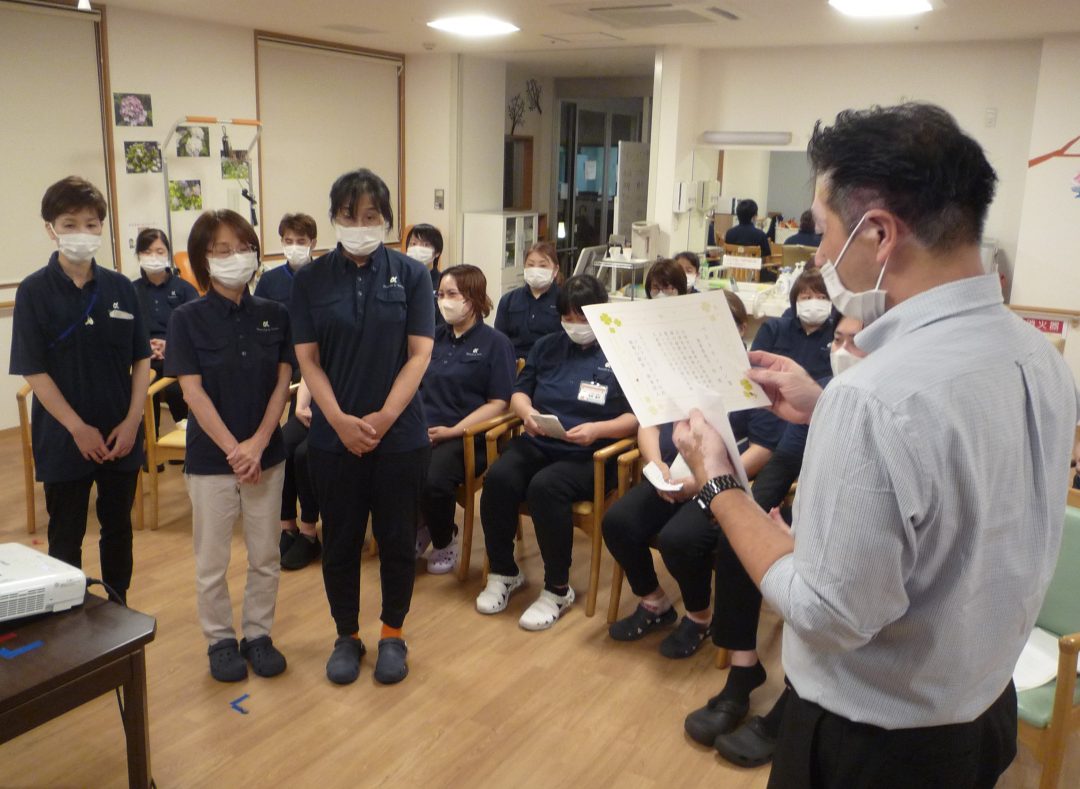 施設からベストキッチン賞、訪問看護から期待してるで賞、訪問介護からグッジョブ賞、通所介護から思いを声にしているで賞の各賞が手渡されました。
