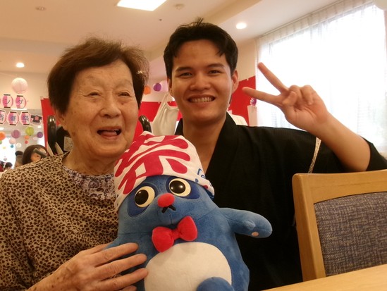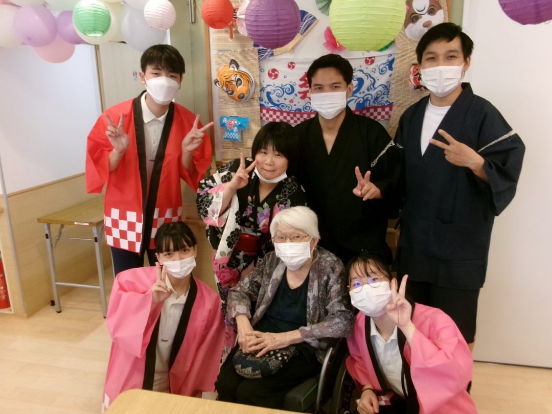 当日は、ホームのスタッフだけでなく留学生アルバイトのクックさんが同じ学校の同級生を連れてきてくれたり、ご入居者に浴衣の着付けをしていただいたり、また、ご入居者のご家族がバイオリンの演奏を披露してくださったりと駅西夏祭りを一段と盛り上げてくれました!