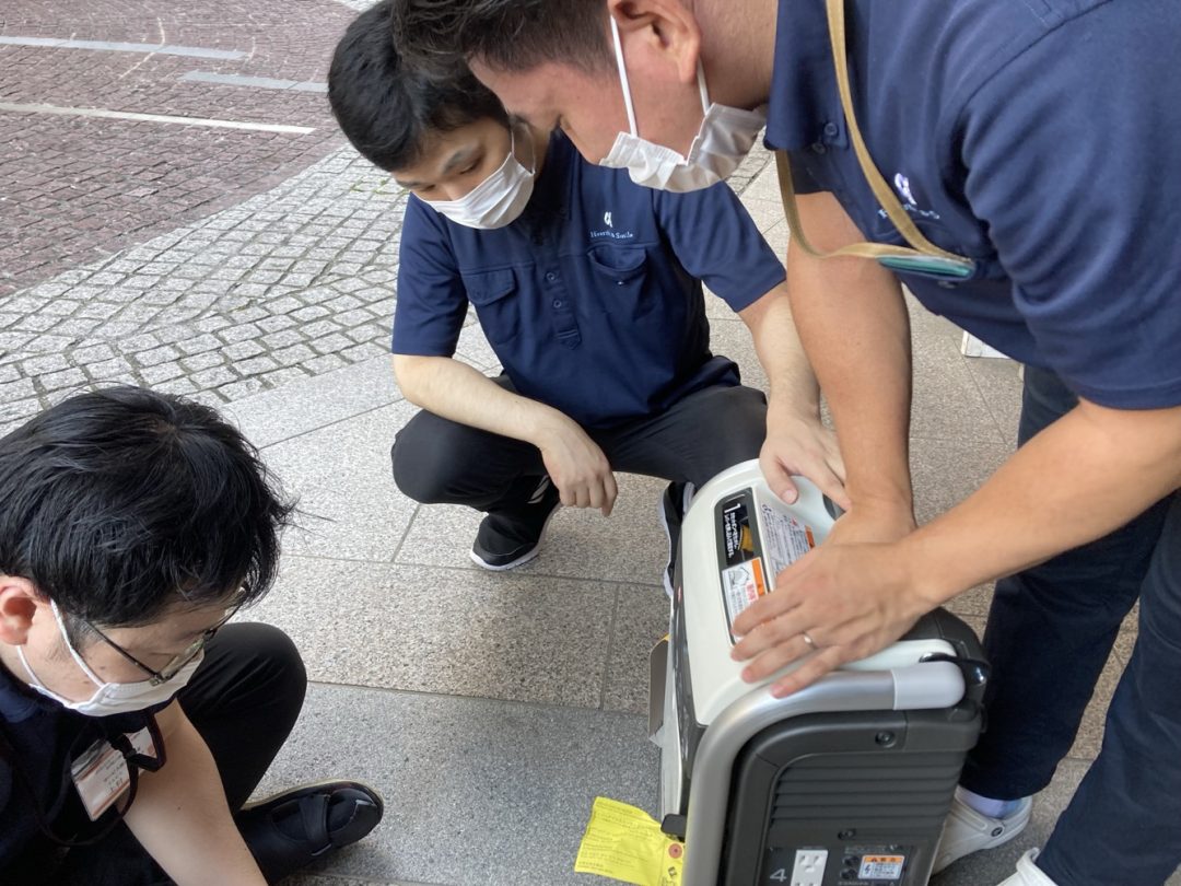 発電機は初めて触るスタッフがほとんどでしたので、皆で説明書を確認しながら「ここを押すのかな?」「向きはこれで合っている?」など、ひとつひとつ皆で確認しながら行いました。