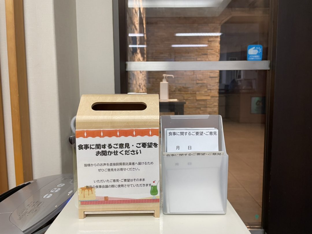 ご意見箱を設置してから変化があったとのお声をいただくこともあり、大切なお食事の時間をよりよいものにしていけたらと思います。今後も「おいしい!」「うれしい!」と言っていただけるよう、ご意見の募集を続けていきます。