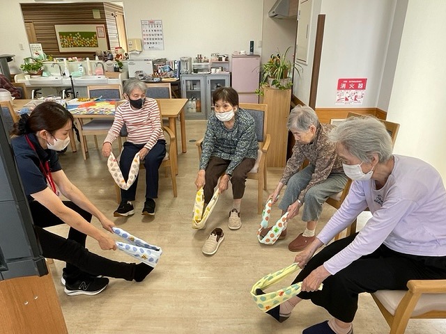 小集団での訓練もタオル体操や脳トレ・口腔体操などいろんなことをされています。