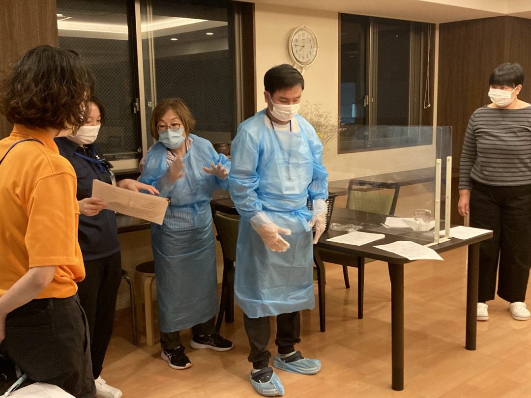 今回の施設内研修は「嘔吐物の処理の方法を学ぶ」です。感染性胃腸炎が疑われる人の嘔吐物などは、すぐに適切な対応を行わないと感染拡大の原因となってしまいます。