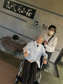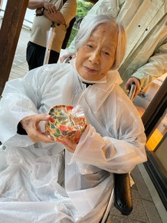 普段はとても小食で、ほぼベッドでお過ごしになるご入居者と伺っており、当日大丈夫かな?と不安でしたが、出発前から準備万端で楽しみにしておられました。