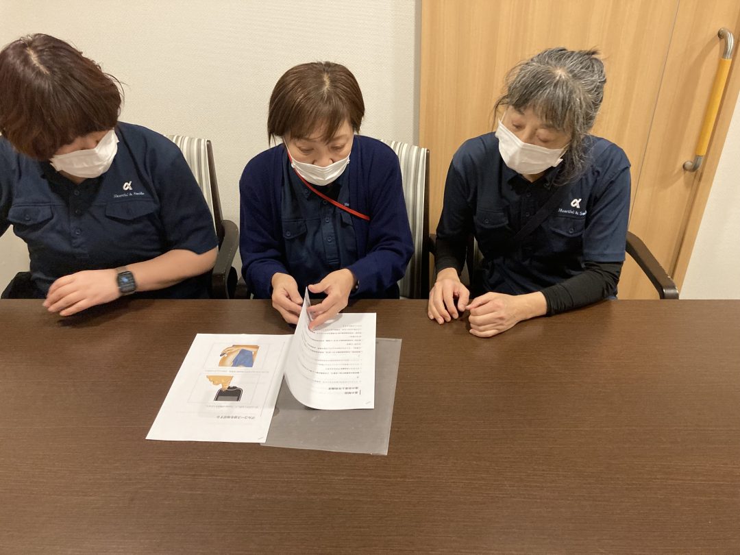 アルファリビング高松松縄ではご入居者のご状況などに合わせて、看護スタッフによる研修を実施しています。少人数での研修を繰り返し行うことで、スタッフ一人ひとりの理解度に合わせて説明の内容やボリュームを変えることができ、より理解を深めることができます。