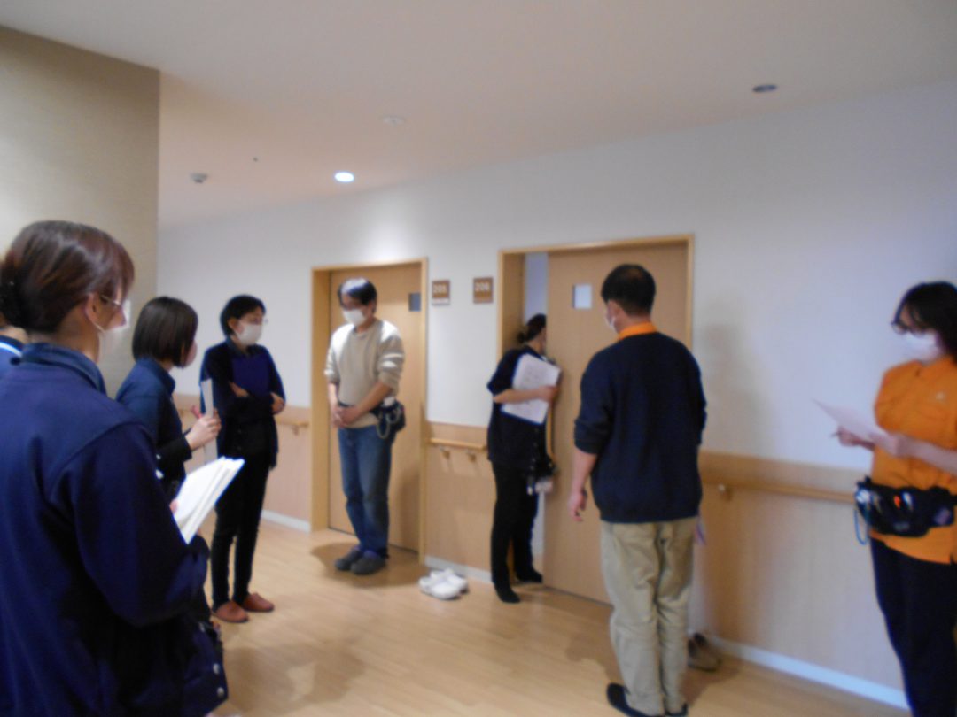 利用者A様は施設長が体現しました。何をポイントに状況報告をしなければいけないのか普段から意識しておかなければいけないと思ったなどスタッフからリアルな感想を聞くことができました。