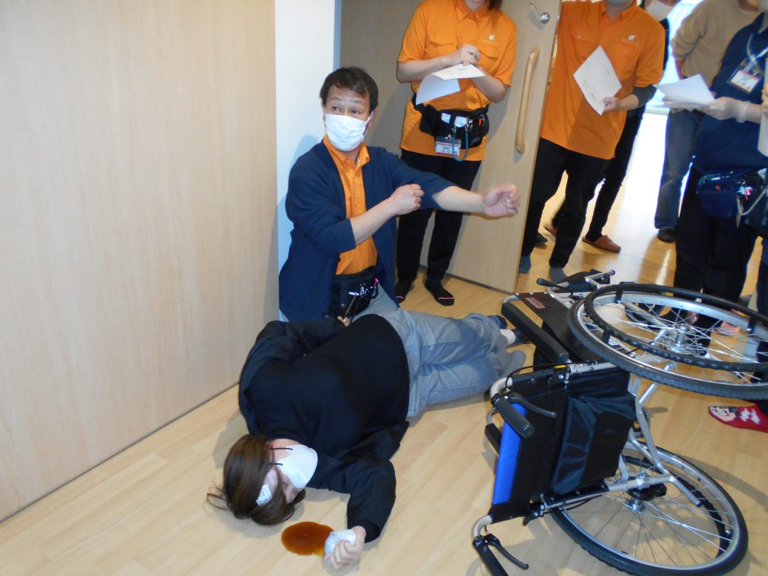 そこで、実際に緊急時対応のシミュレーションを行いました。想定の人物像はスタッフには事前に伝えません。