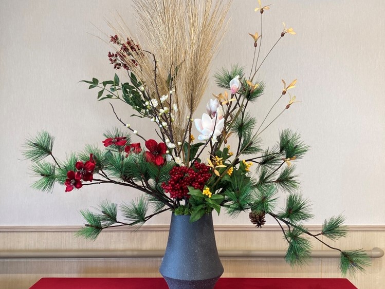 また、エンランス正面にはお正月にふさわしい花がより一層引き立てています。ご利用者も大変喜ばれていました。