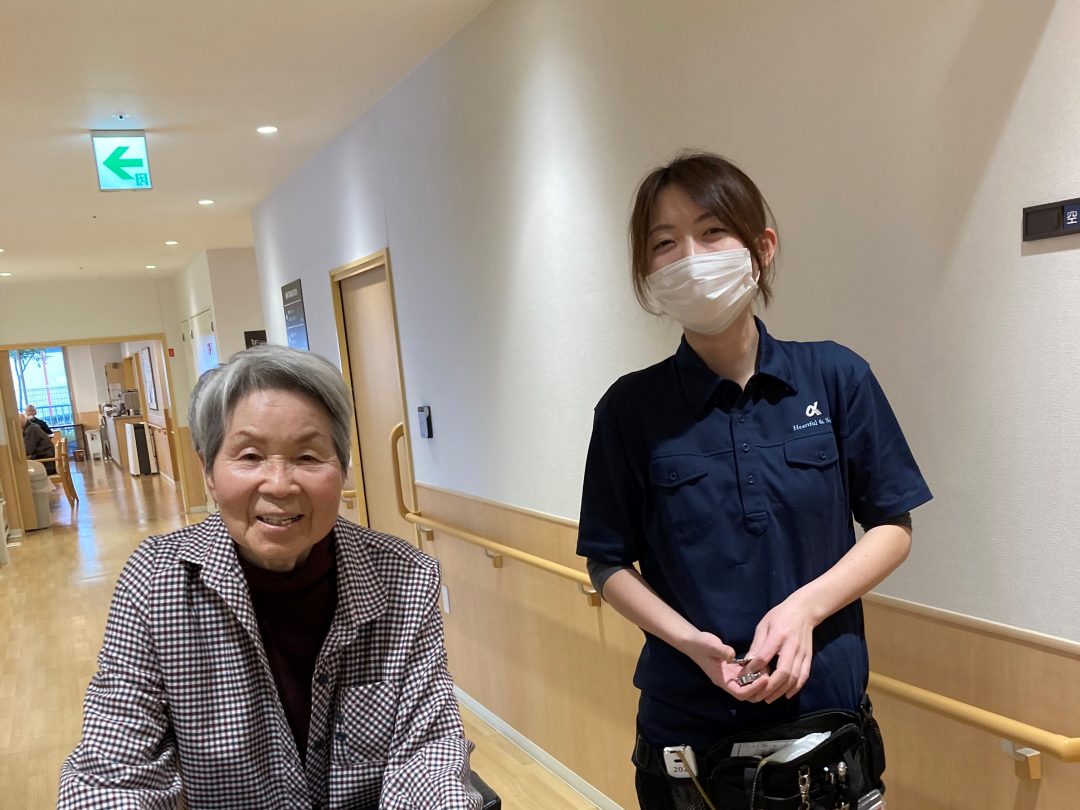 ご入居者にお声をかける姿も自然な距離感になっていて、先日も迷われていた方へのお声かけが素敵でした。「○○さん、どうされたんですか???」「一緒に行きましょうか?」