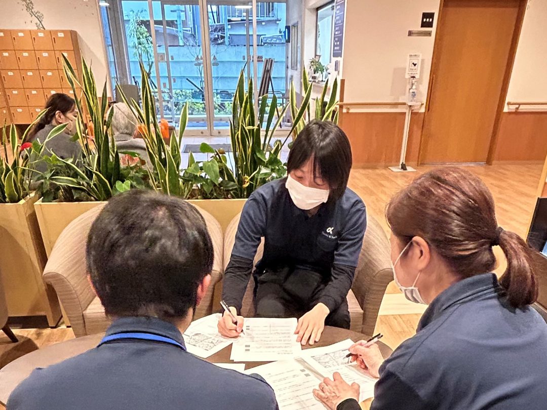 アルファリビング川西能勢口駅前には、ご入居者に安心安全な生活を過ごしていただくために様々な委員会があります。私の所属する「災害対策委員会」では、1か月に1度、様々な災害の対策について話し合いを行っています。2025年3月の話し合いではBCP訓練について話し合いました。