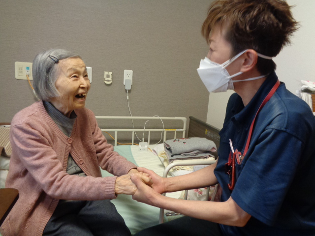 あるご入居者は、就寝時に「手を握ってくれる?」とおっしゃったり、「私、このまま動けんなるんやなかろか」などと不安な気持ちを吐露されてくださったり…。