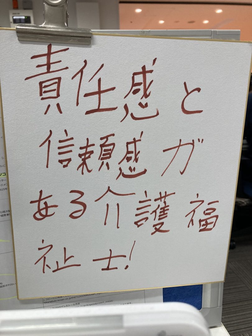 目標は「責任感と信頼感のある介護福祉士」とのこと。