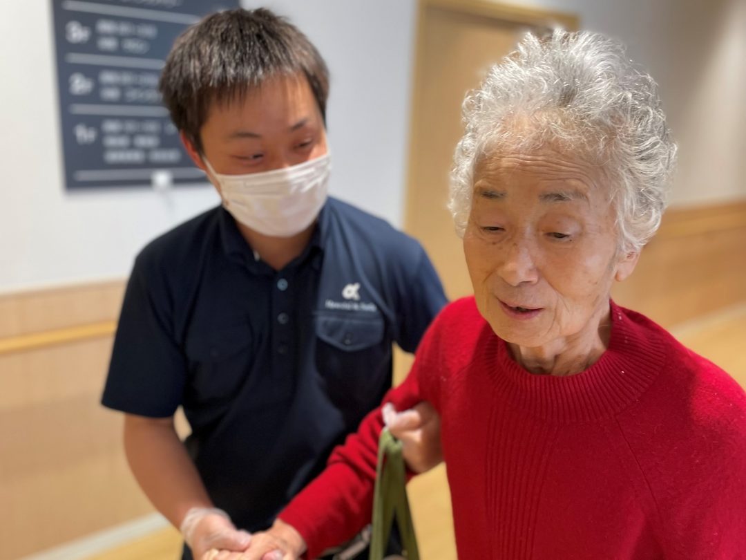 ガチガチに緊張していたので、肩が凝ってしまうのでは…?と心配になるぐらい表情が硬かったのですが、1か月経ち、スタッフの名前、ご入居者のお顔、氏名も覚えたそうです。ご入居者から「頑張ってね」とお声をかけていただいている様子もみられるようになりました。