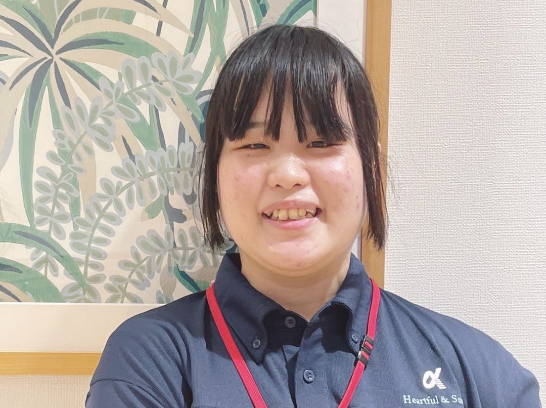 まつしたさん「高校を卒業してはじめての介護業界なので緊張していますが他のスタッフが優しく教えてくれるのでうれしいです」