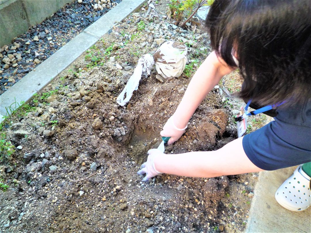 ある日、スタッフの提案で敷地内に皆様でタイムカプセルを埋める事になりました。