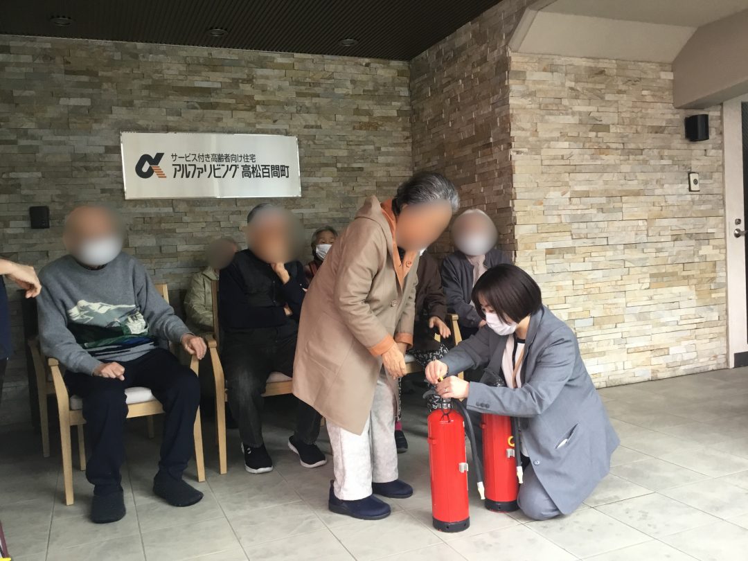 アルファリビング高松百間町は10階建ての建物なので、最上階から非常階段を下りて避難されるご入居者もいらっしゃいます。その素晴らしい脚力は、日頃の努力の賜物だと感じます。