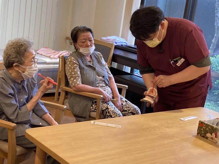 口腔機能向上加算を算定するにあたり、ご利用者の皆様にも口腔機能や口腔衛生の大切さを学んでいただきたく、歯科クリニックに協力をお願いしたところ、快く承諾してくださいました♪