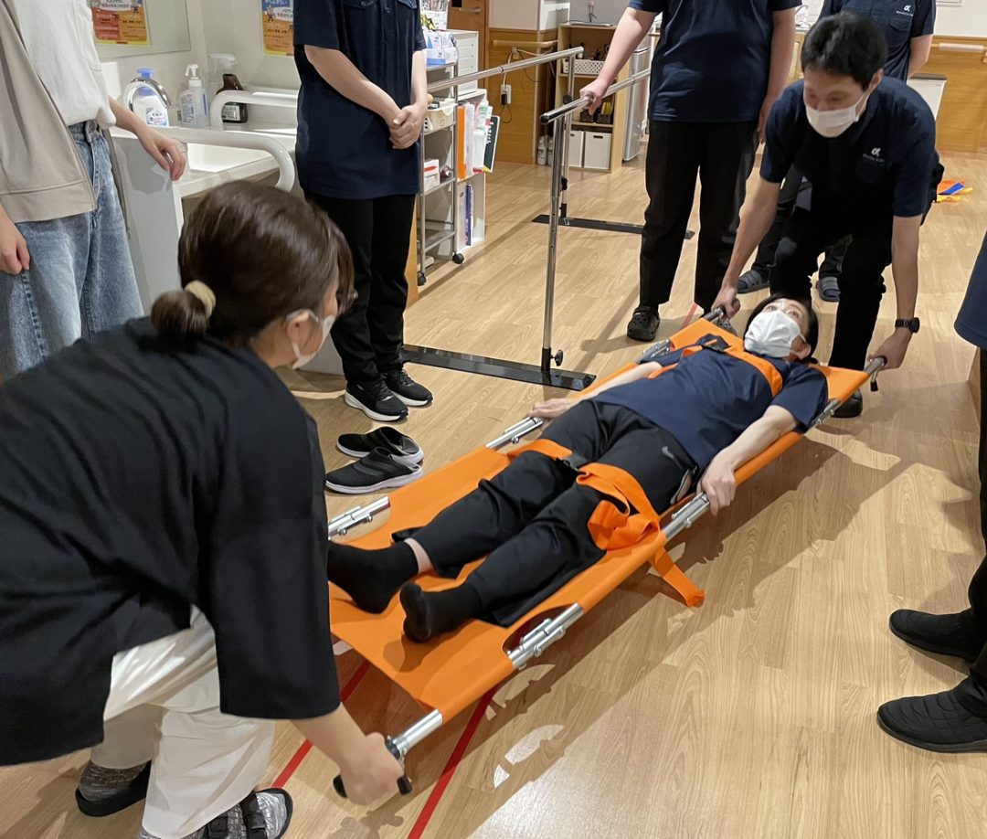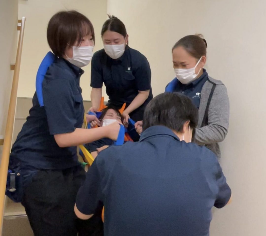その後は、非常用ストレッチャーを使用し、階段昇降を試しました!