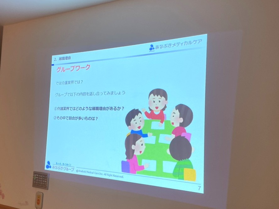 当日は高齢者施設紹介会社や近隣の有料老人ホームの施設長、訪問看護事業所の看護師さんや介護タクシー事業所の方等多くの方にお集まりいただき、グループワークを中心にそれぞれの視点から離職の理由やそれを改善するためにはどうすれば良いかを協議しました。