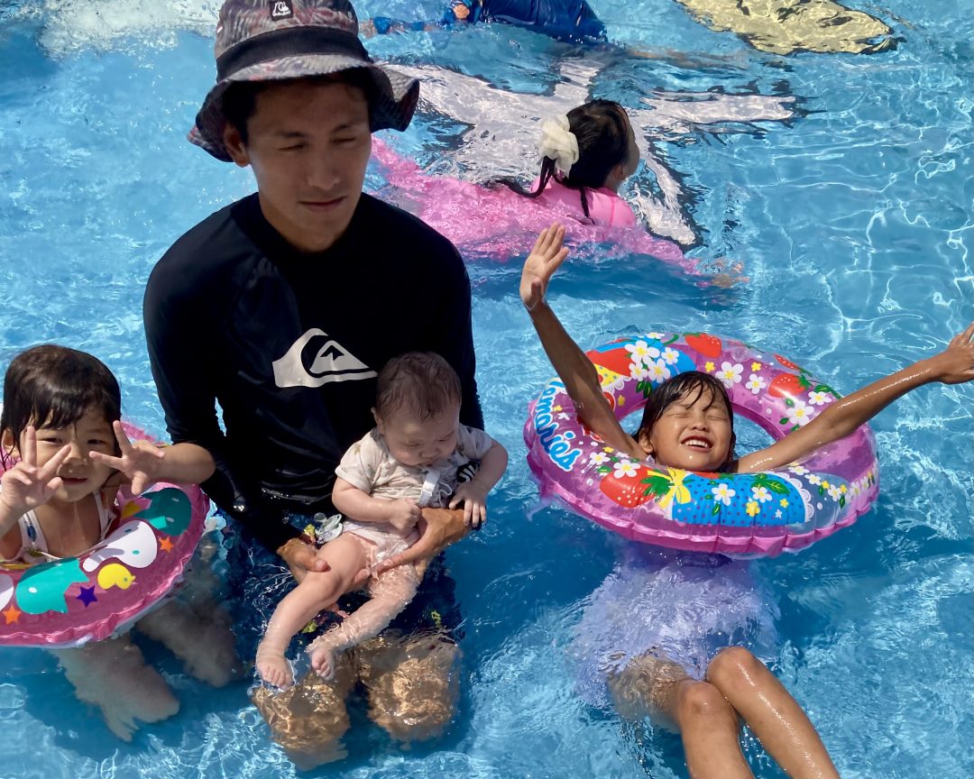 育休中は、上の兄弟たちと一緒に赤ちゃんのお世話をしたり、料理や掃除、洗濯などの家事を分担したりと、家族全員で協力する時間を大切にしました。また、家族で海や川、プールなどのアウトドアにも出かけ、子どもたちとの思い出づくりを通して、母親の育児負担を少しでも軽減できるよう努めました。