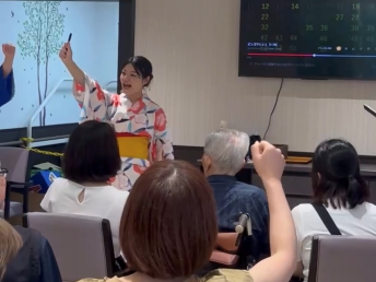ビンゴゲームでは司会を担当しました。30人ほどの方を前に話すことはなかなかない機会で緊張しましたが、バラエティー特番のアナウンサーの気持ちで楽しく司会をさせていただきました。