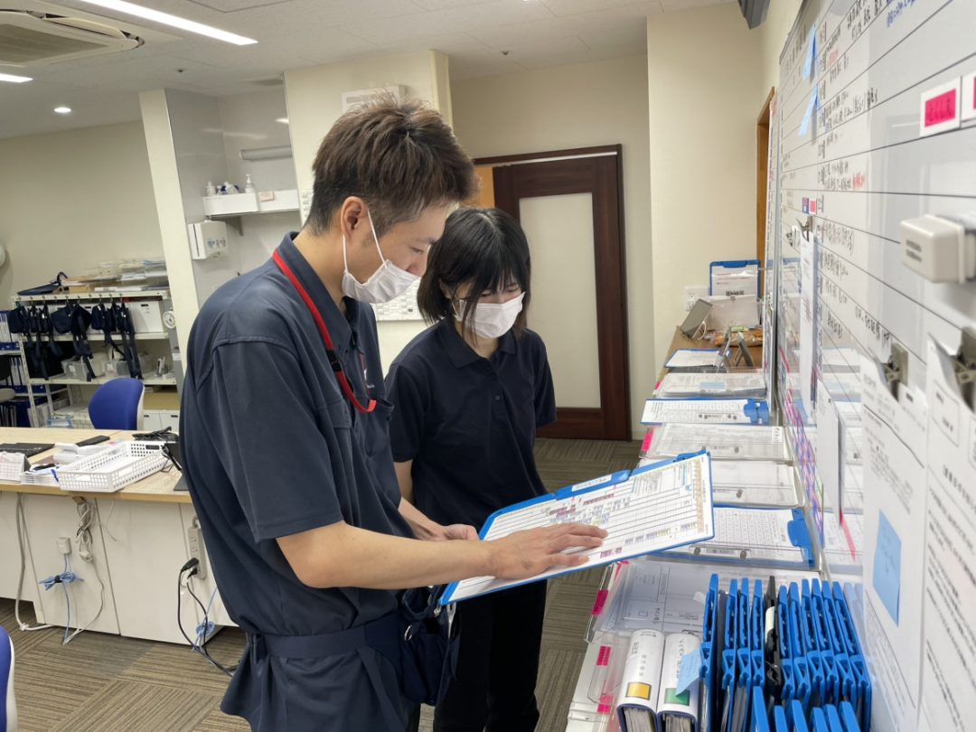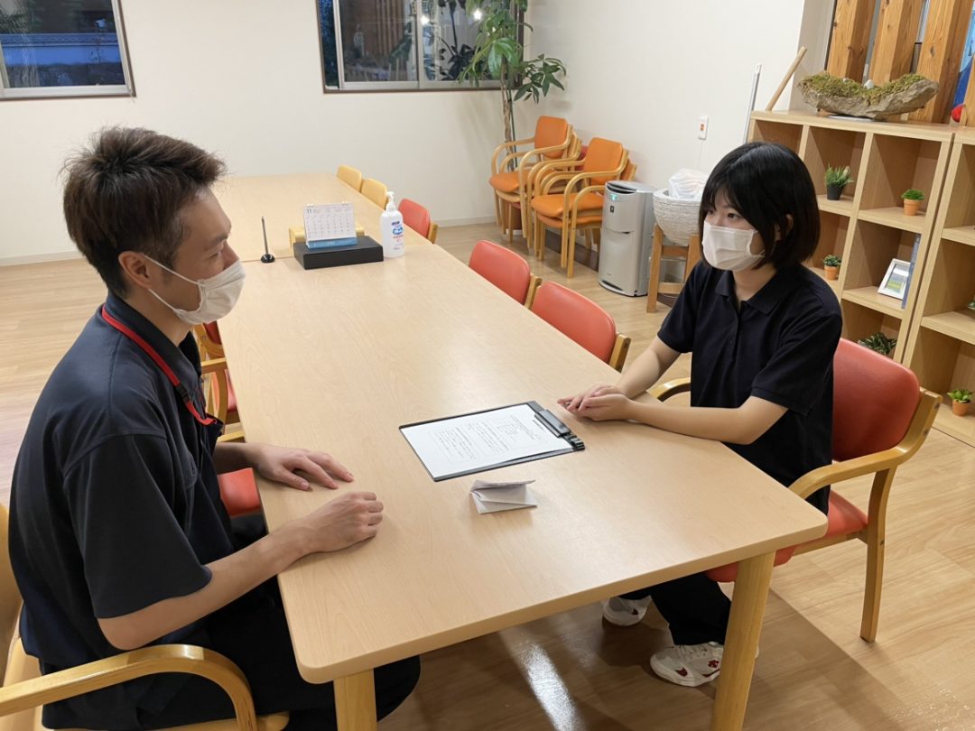 その後、各居室を訪問し水分補給や排泄に関するお声がけが必要な方への支援を見学・体験し、すき間時間でお客様とのコミュニケーションを楽しんでいただきました。