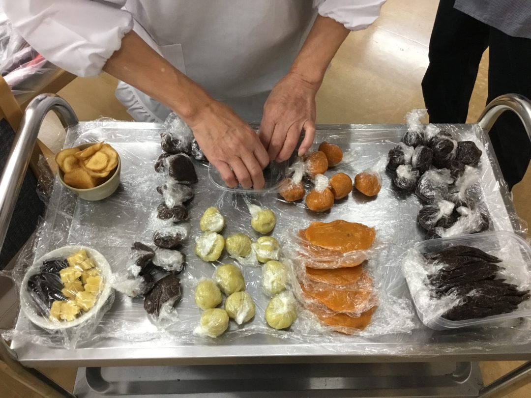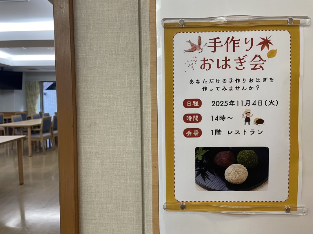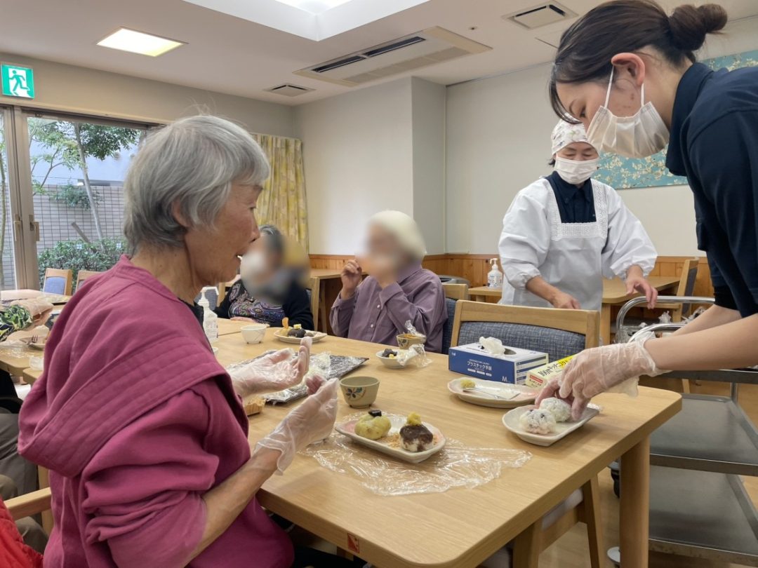 11月は「おはぎ作り」のイベントを開催しました。調理に関しては厨房業者さんとも協力しながら、材料の手配や当日の流れの確認など、準備することがたくさんあります。